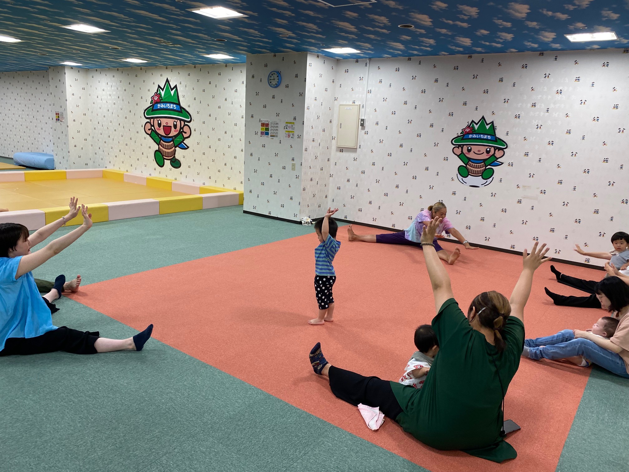 パパ・ママと手をつなぎ音楽に合わせグルグルまわるなど笑顔たくさんでした。次回は8/10です。皆さんお気軽にお越しください!!