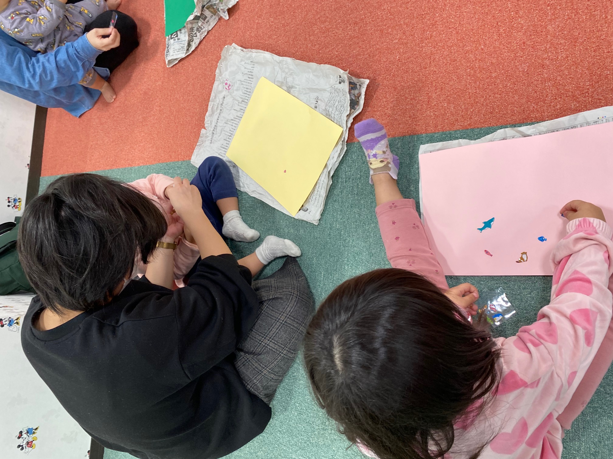 ピアノに合わせてクレヨンでお絵描き。色んな音の〇が描けました♫
